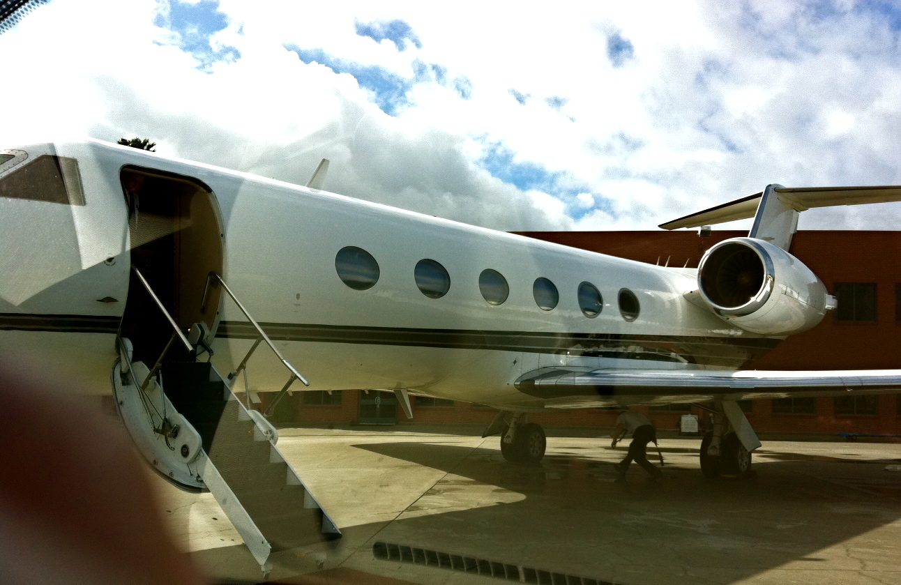 Car services picks me up. 9 bells. Slightly late. Balls. Farewell to Bob. Out the door. Back to London. Single parenthood over. 9.15. Good to go. Off to Van Nuys. Private airport. Same one in Entourage, I’m told en route. The Man. The Jack. Chowder. Charlotta. And a late ape. Weekend break in Miami. The Man’s generosity knows no boundaries! Giddy up! Flight leaving at 10 bells. Are we going to miss our time slot because of the late ape? Nay. No check-in. No security. Nothing. Drive up to a gate. Press the buzzer. Stay in the car. Drive through. Drops you off at the jet. Hassle free. Private on. Nice jet? Unreal. Like a G6? I think so. Oh Jesus. Jump out. Driver takes care of your luggage. You can just admire the view. No ID check. No shoes off. Belt off. Pants down. Nada. Just stroll on. Sit down. Stewardess says hi. Champagne? Bloody Mary? Cup of tea? Ehhh. All three? Oh Betsy!! Drug barons must be zipping to and fro? Miami on!!!