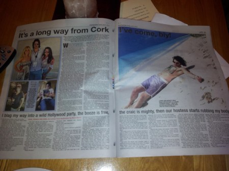 Oh. And there was also this fine spread in an Irish paper today. Me naked legs spread wide over two pages. Mighty mighty. Although I was promised a seven page spread. But I’ll get over that. One thing that is odd to see is when your stuff is edited or quotes are just made up. Never really a fan of that. In case you ever wondered what goes on in the editing world, here’s an example of a slight edit…