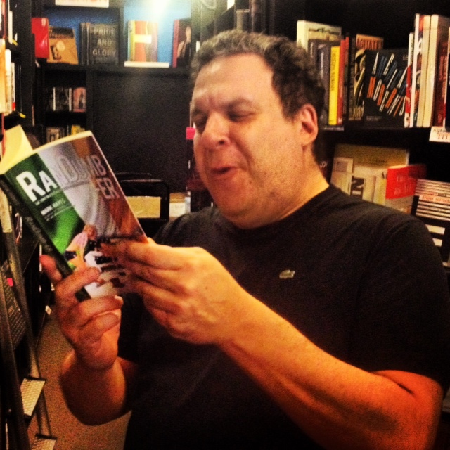 By now the manager is over to us. Think she recognises me. I actually need to talk to her about getting RanDumber in store there as well. Tells me they are ordering it. Jeff is picking up books that he wants to buy. I’m absentmindedly picking up books that I like the look of, keeping the conversation flowing. I have a stack of about ten books. The manager is offering me an event to celebrate RanDumber coming to their store. Jeff is giving me the thumbs up while reading RanDumber. It’s all brilliant. We’re now at the till. I put the books down. Ask Jeff if I can get a photo of him reading. He’s delighted to, sound man. Thank them both for their time. Tell Jeff he’ll have to get ready to be in the sitcom of the book. Realise now I’m pushing my luck. Hand my credit card over to the sales clerk. Jeff tells me to enjoy my good looks. I say I will. Bid adieu. Sign the docket. Books in the bag. Leave the store. Skip home. Happy as Larry with my little adventure. Didn’t give him the DVD but at least he got a book. No doubt he’ll show that to Larry David and they’ll both get on to HBO saying they want to produce the show too. No doubt. Get home. Realise I bought about 10 books. Almost two hundred dollars worth. Some of the books I already have. And the others… The History of the Civil War? Dose. Some dope.